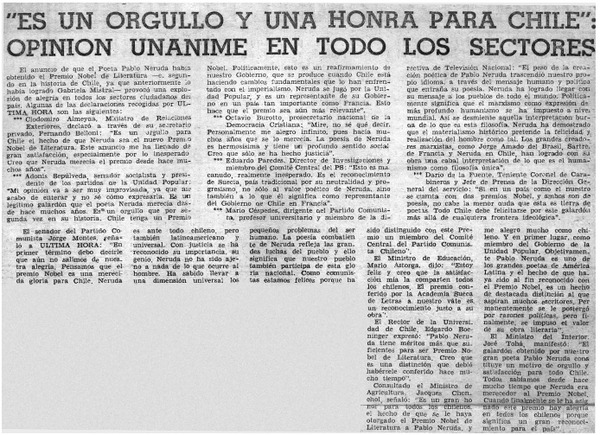 Es un orgullo y una honra para Chile" opinión opinión unánime en todo los sectores [artículo] :