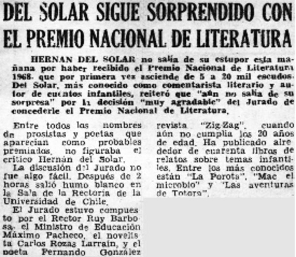 Del Solar sigue sorprendiendo con el Premio Nacional de Literatura. [artículo]