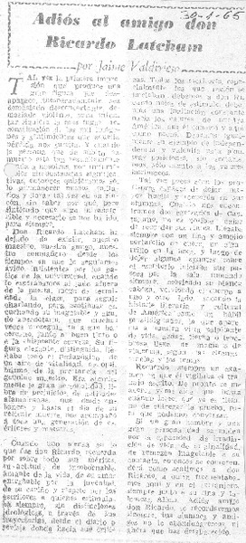 Adiós al amigo don Ricardo Latcham [artículo] Jaime Valdivieso.