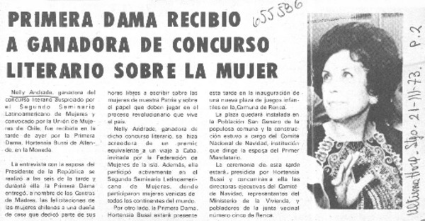 Primera dama recibió a ganadora de concurso literario sobre la mujer [artículo]