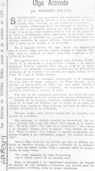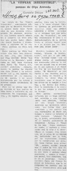 Autoras chilenas - Acevedo, Olga - Víspera irresistible
