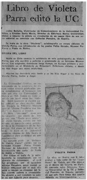 Violeta Parra: un año mas [artículo] Sergio Martínez.