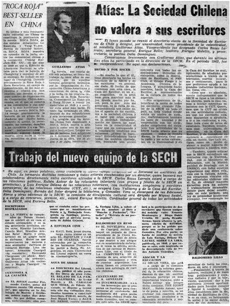Atías: La Sociedad Chilena no valora a sus escritores. [artículo]