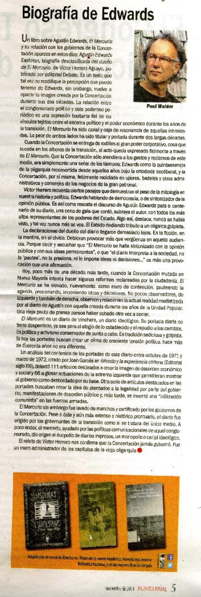 Autores chilenos - Edwards E., Agustín - Herrero Aguayo, Víctor - Agustín Edawds Eastaman, biografía desclasificada del dueño de El Mercurio