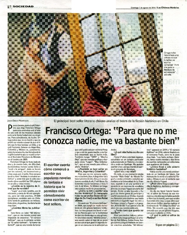 Francisco Ortega: "para que no me conozca nadie, me va bastante bien" [entrevista] [artículo] Juan Diego Montalva.