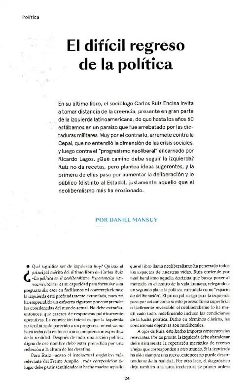 El difícil regreso de la política [artículo] Daniel Mansuy.
