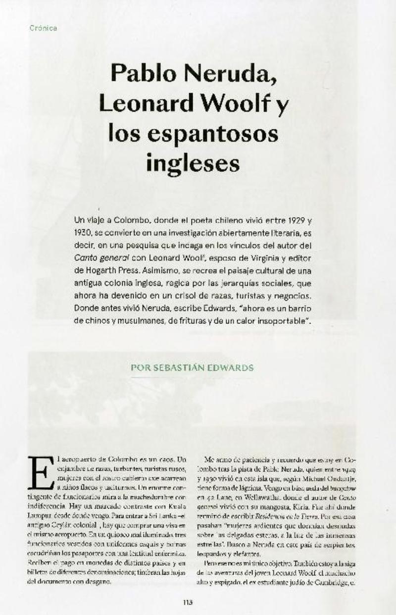 Pablo Neruda, Leonard Woolf y los espantosos ingleses [artículo] Por Sebastián Edwards