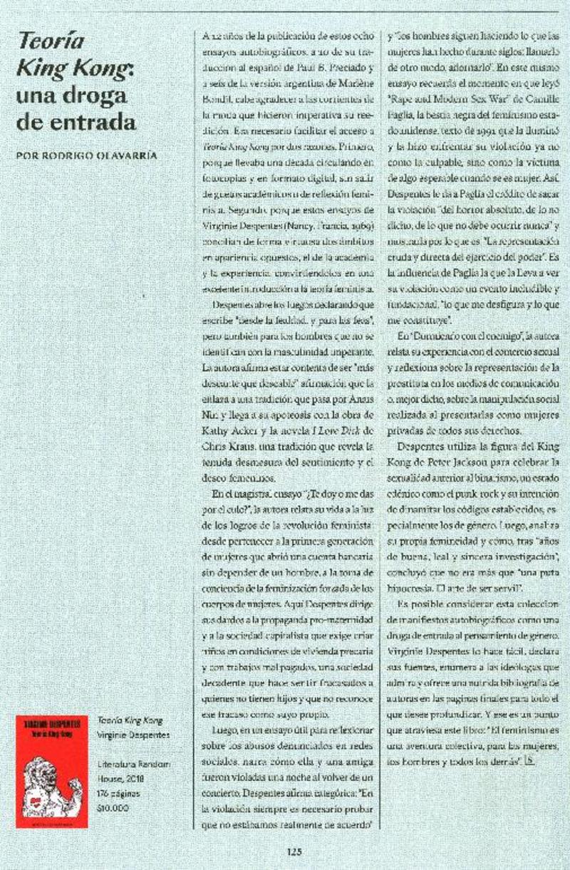 Teoría King Kong : una droga de entrada [artículo] Por Rodrigo Olavarría.