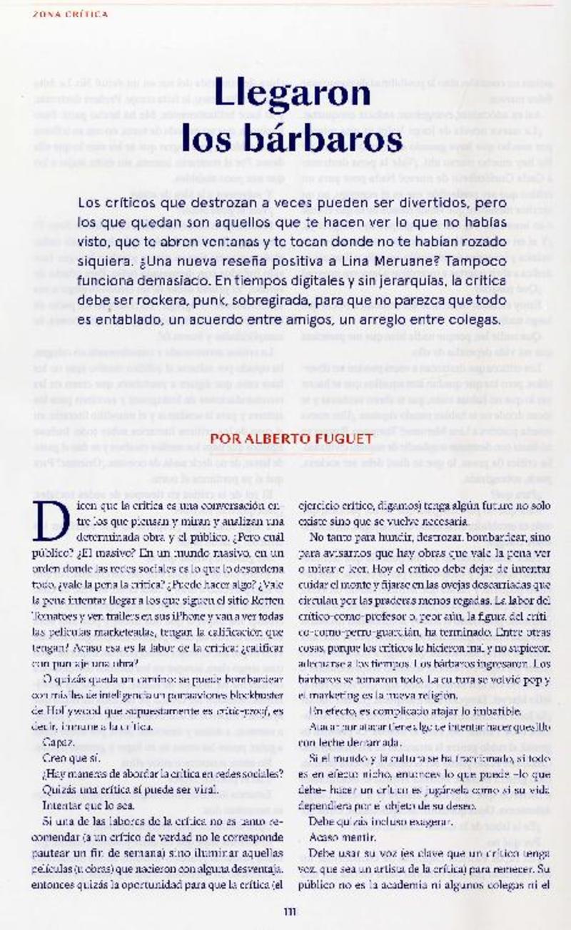 Llegaron los bárbaros [artículo] Por Alberto, Fuguet.
