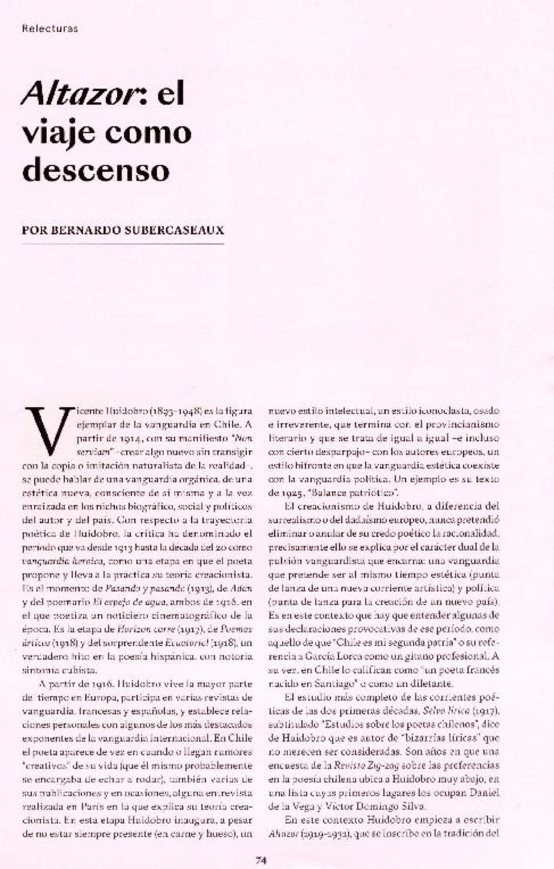 Altazor: el viaje como descenso [artículo] Bernardo Subercaseaux.