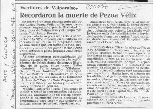 Recordaron la muerte de Pezoa Véliz [artículo].