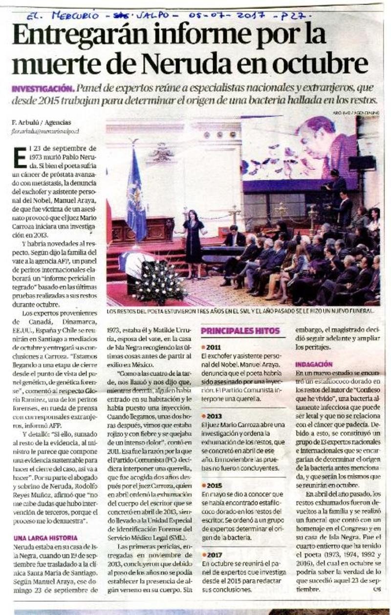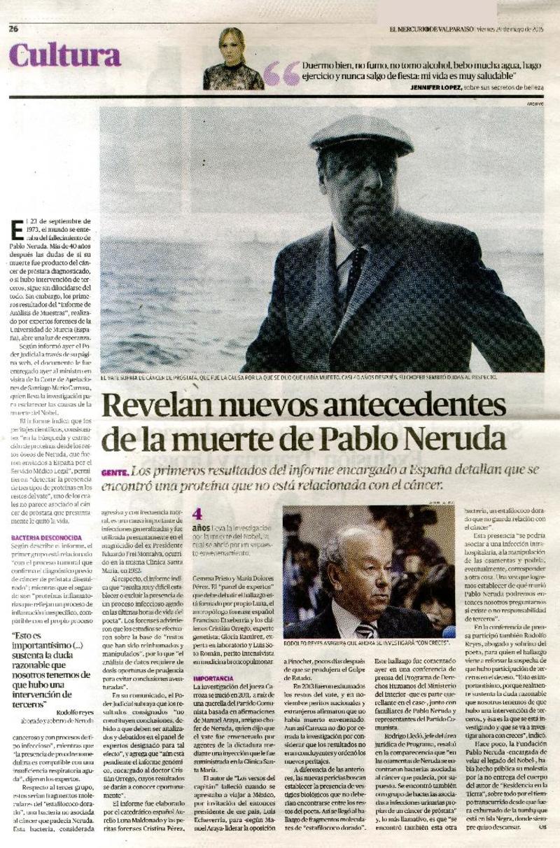 Revelan nuevos antecedentes de la muerte de Pablo Neruda. [artículo]