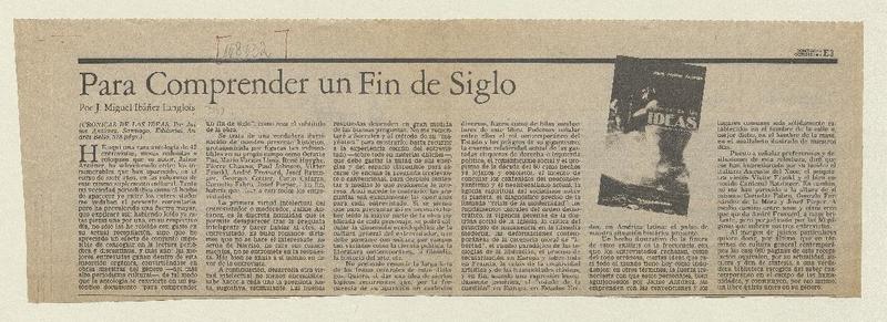 Crónica de las ideas, para comprender un fin del siglo [artículo] Bernardo Soria.