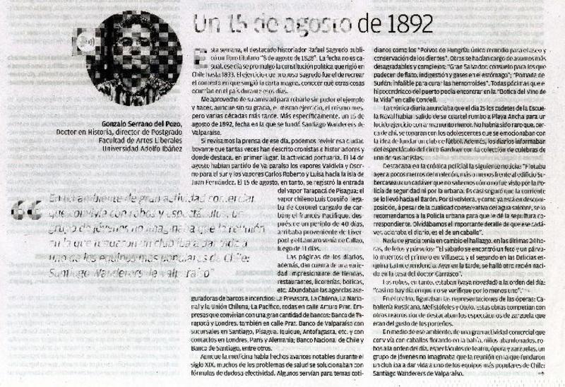 Un 15 de agosto de 1892 [artículo] Gonzalo Serrano del Pozo.