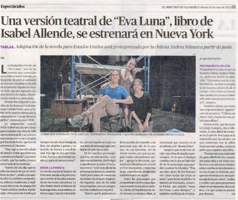 Una versión teatral de "Eva Luna", libro de Isabel Allende, se estrenará en Nueva York [artículo].