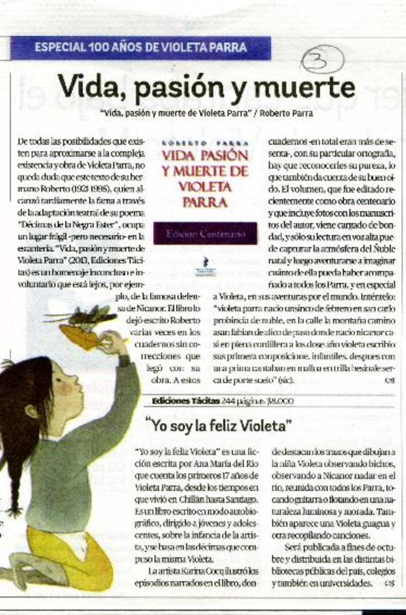 Autores chilenos - Parra, Violeta - Parra, Roberto - "Vida pasión y muerte de Violeta Parra"