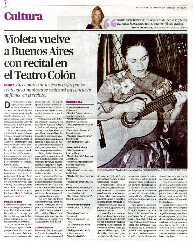 Violeta vuelve a Buenos Aires con recital en el Teatro Colón [artículo]