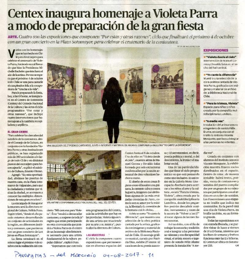 Centex inagura homenaje a Violeta Parra a modo de preparación de la gran fiesta [artículo]