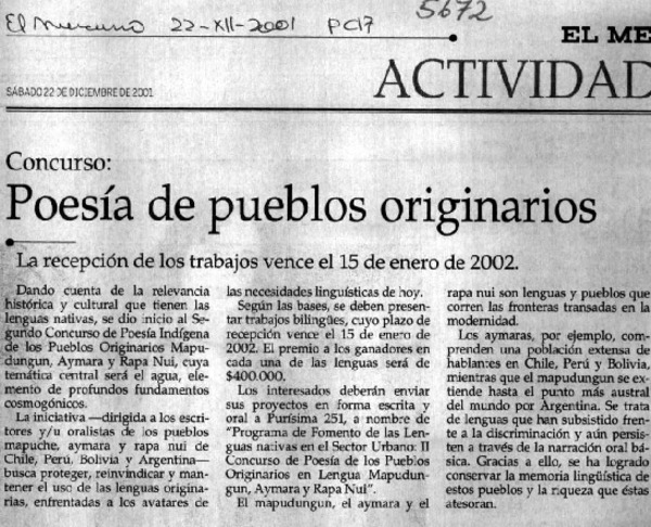 Concurso: Poesía de pueblo originarios. [artículo]
