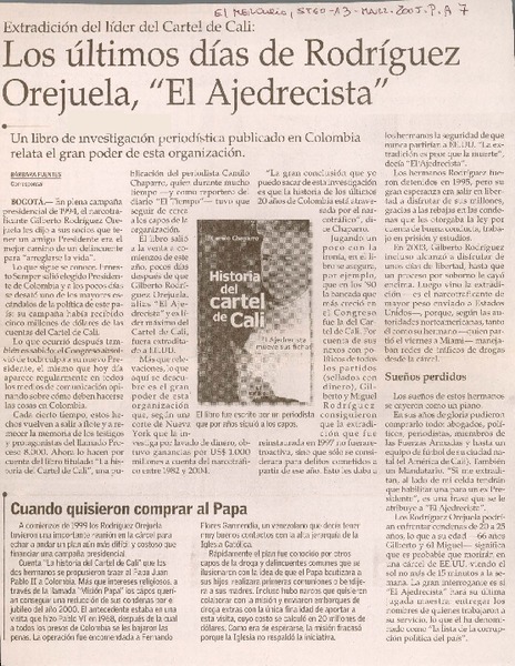 Extradición del líder del Cartel de Cali : Los últimos días de Rodríguez Orejuela, "El Ajedrecista" [artículo] Bárbara Fuentes.