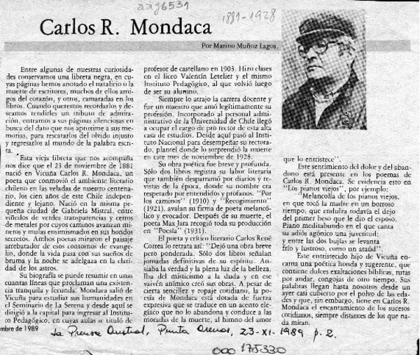 Carlos R. Mondaca [artículo] Marino Muñoz Lagos.