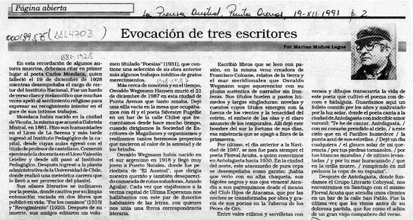 Evocación de tres escritores [artículo] Marino Muñoz Lagos.