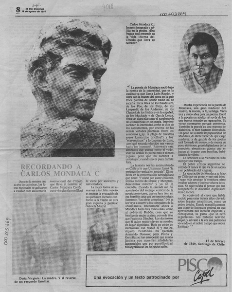 El poeta Carlos Mondaca [artículo] Marino Muñoz Lagos.