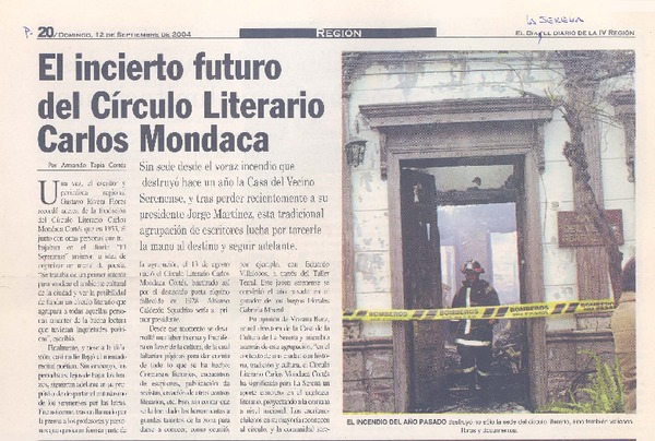 El incierto futuro del Círculo Literario Carlos Mondaca [artículo] Armando Tapia Cortés.