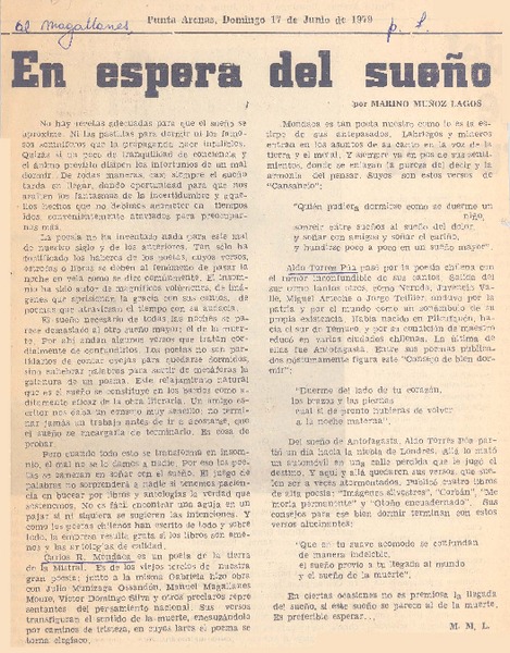 En espera del sueño [artículo] Marino Muñoz Lagos.