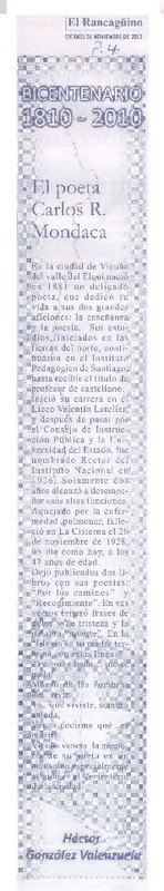 El poeta Carlos Mondaca R. [artículo] Héctor González Valenzuela.