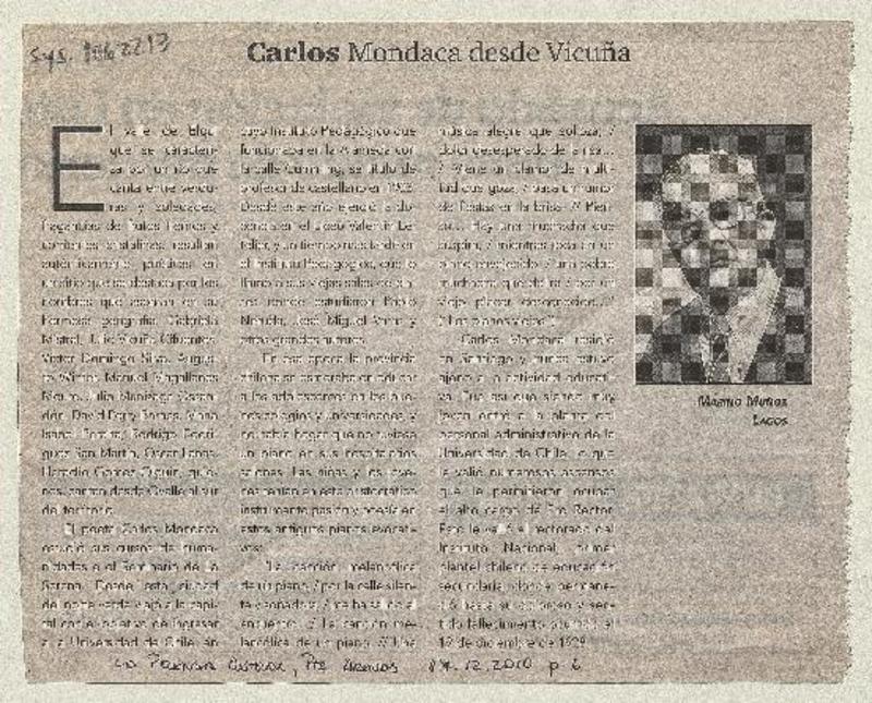 Carlos Mondaca desde Vicuña [artículo] Marino Muñoz Lagos.