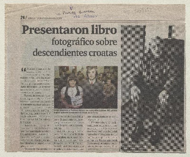 Presentaron libro fotográfico sobre descendientes croatas [artículo]