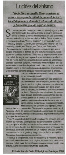 Lucidez del abismo [artículo] Alfredo Barría M.