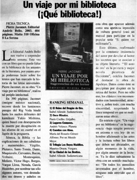 Autores chilenos - Jacomet Ollivet, Pierre - Viaje por mi biblioteca