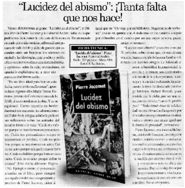 "Lucidez del abismo" : ¡Tanta falta que nos hace! [artículo]