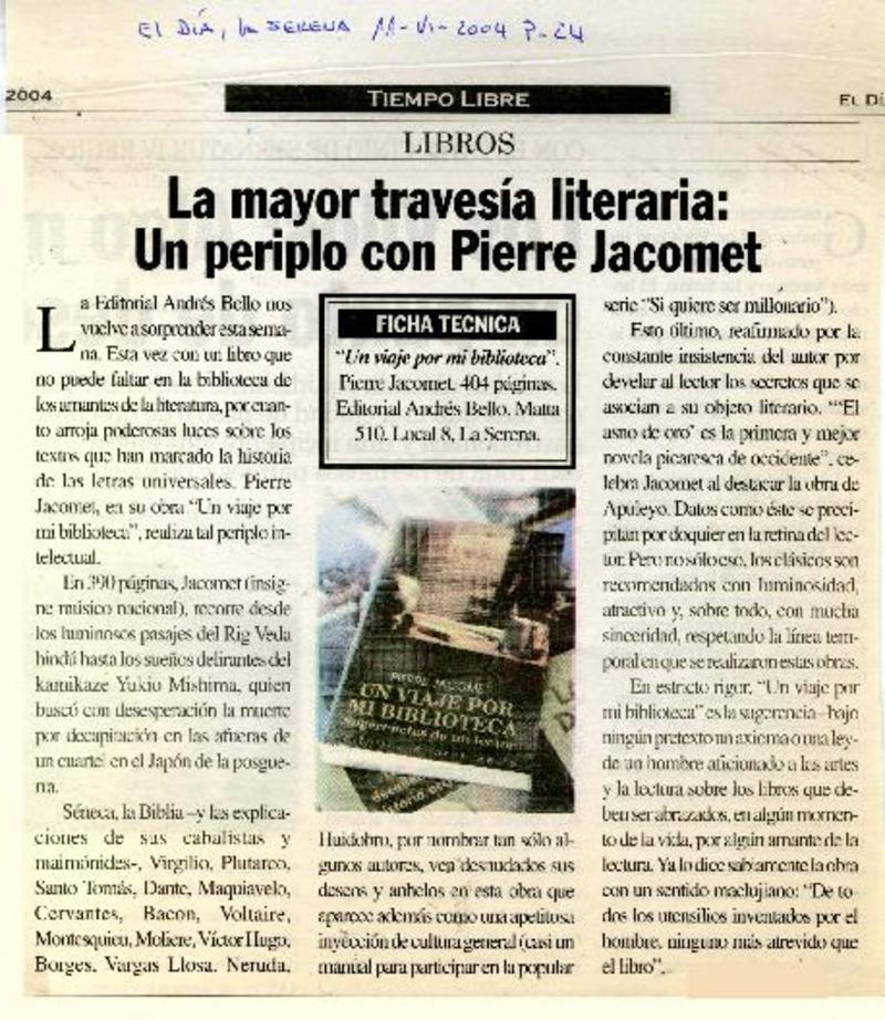 La Mayor travesía literaria: Un periplo con Pierre Jacomet. [artículo]