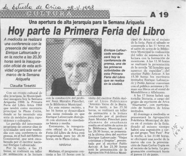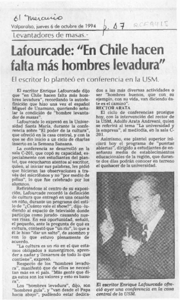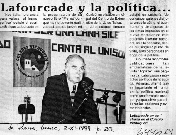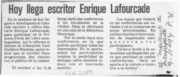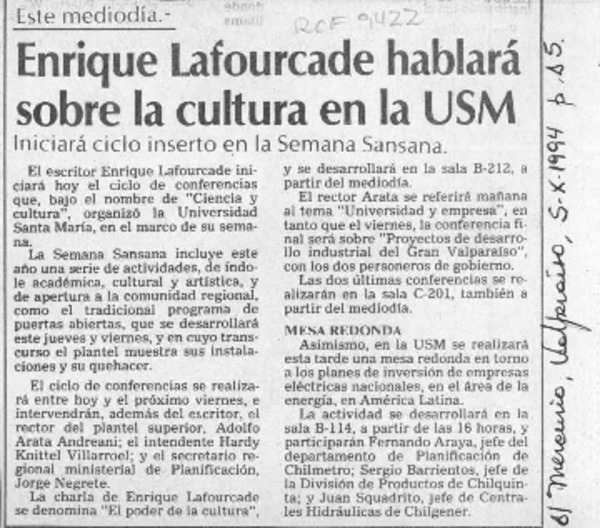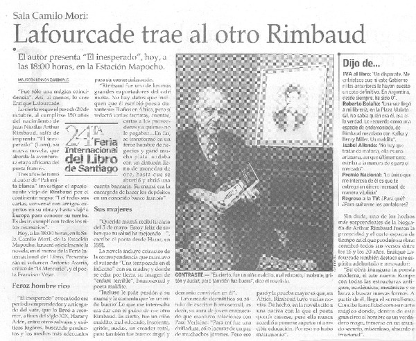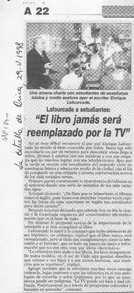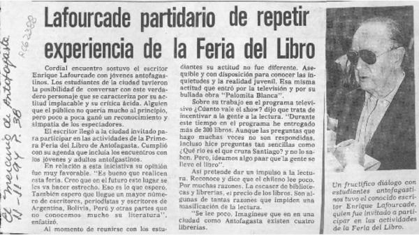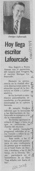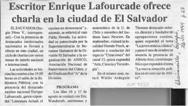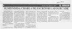 Suspendida charla de escritor Lafourcade [artículo].