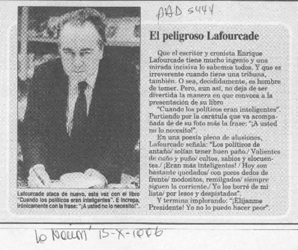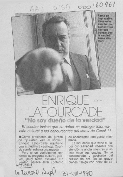 Como "hombre de malas pulgas" se definió Enrique Lafourcade. [artículo]