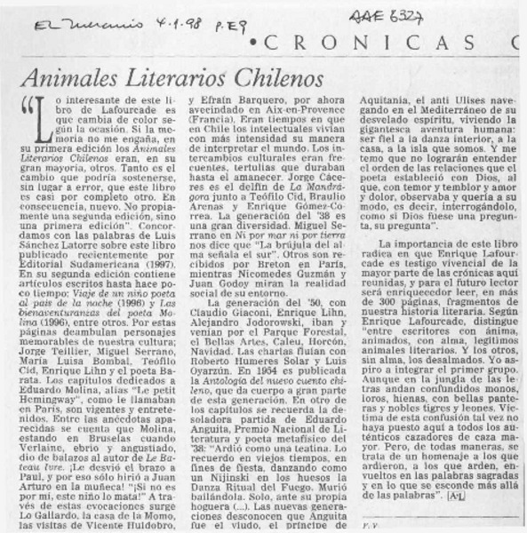 Animales literarios chilenos [artículo] F. V.
