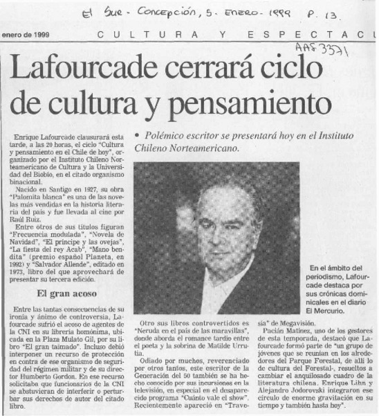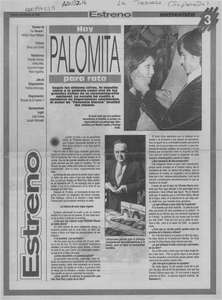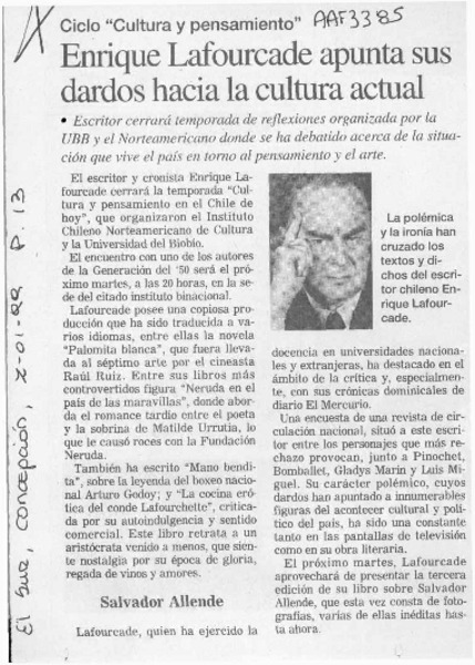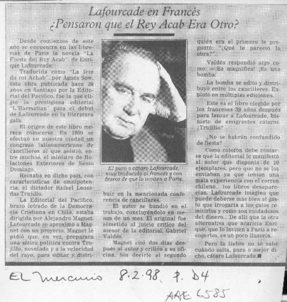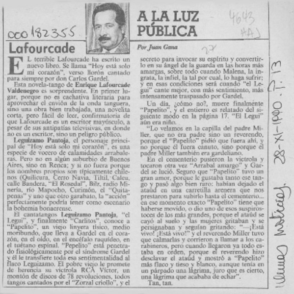 Un escritor en la pantalla, Lafourcade [artículo] Alfredo Aranda J.