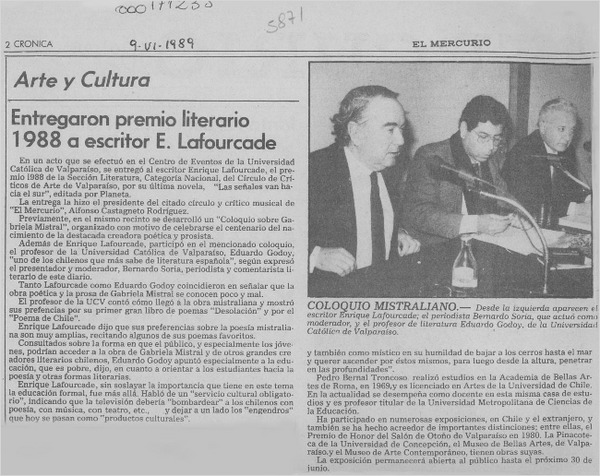 Fernández Larraín, Sergio - Lafourcade, Enrique - Mistral, Gabriela - Autores chilenos