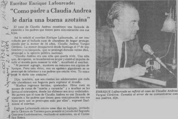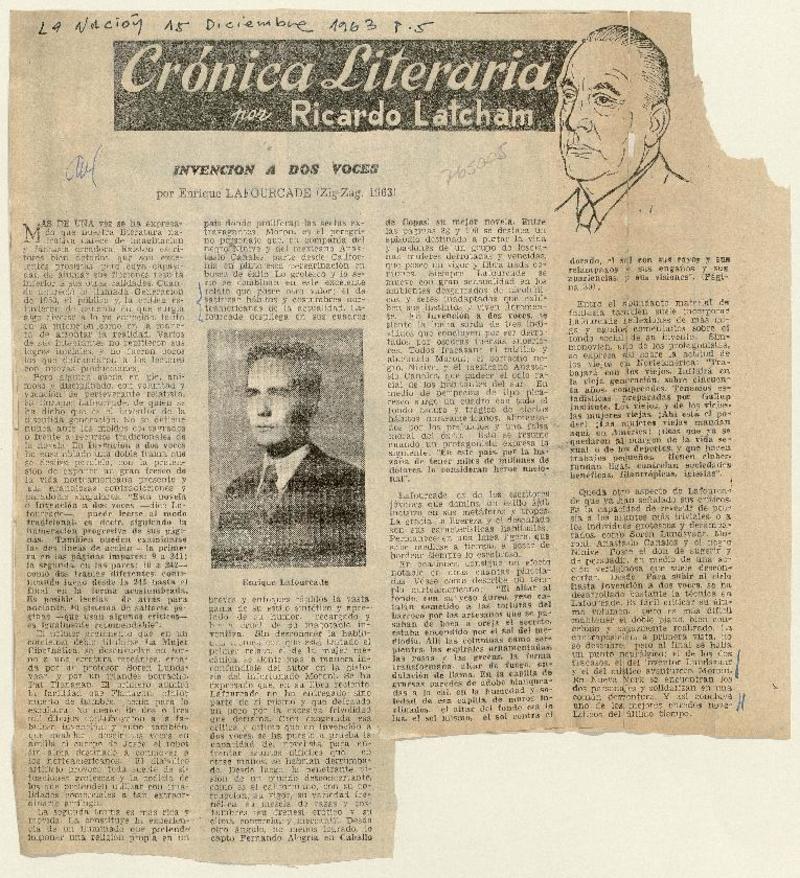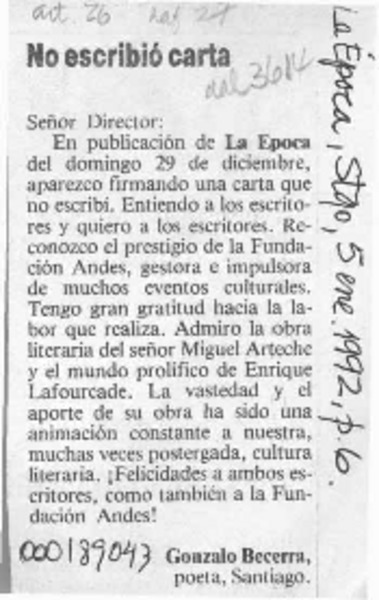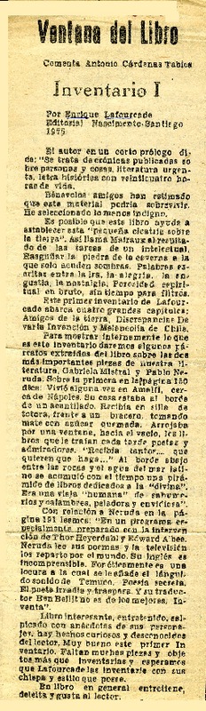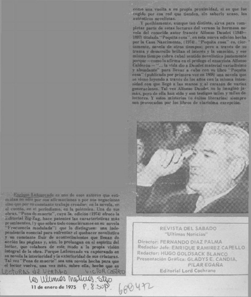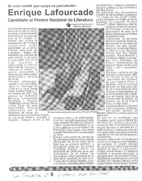 Carta a Enrique Lafourcade [artículo] Agata Gligo.