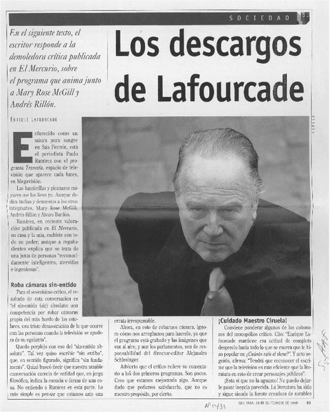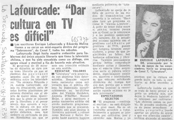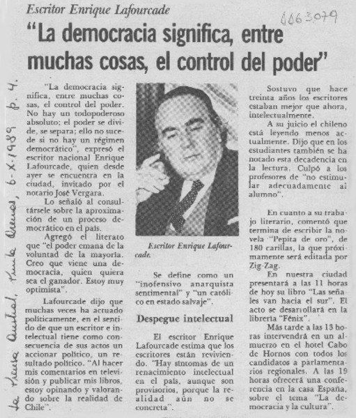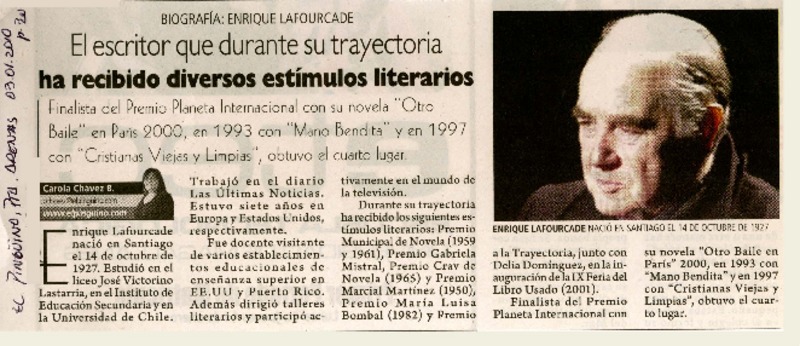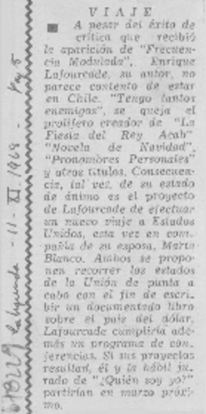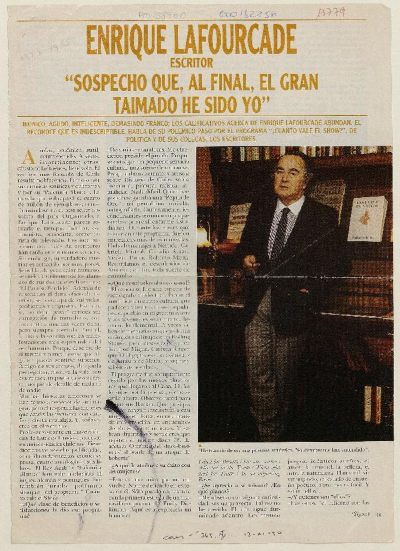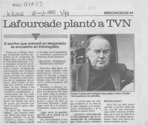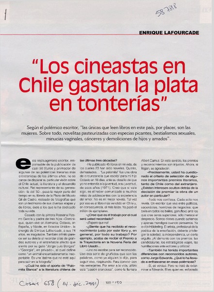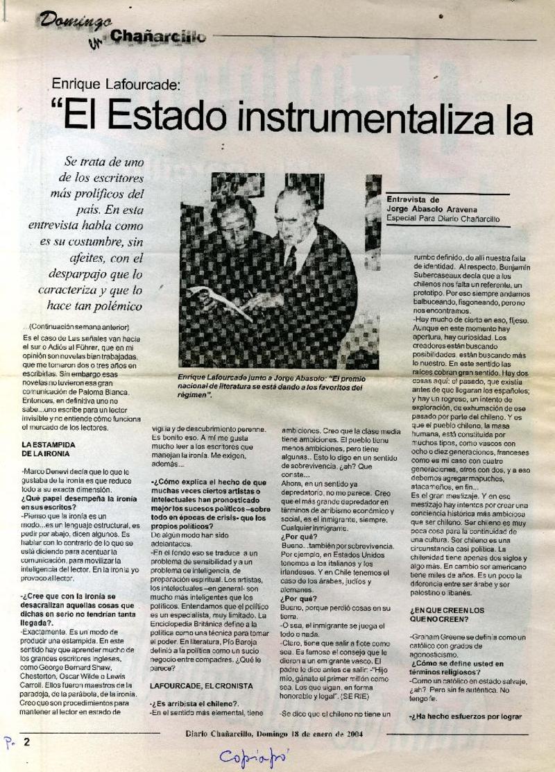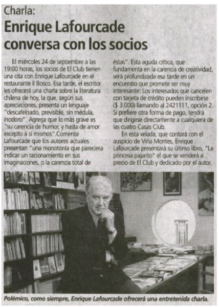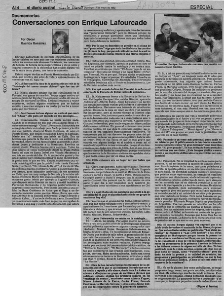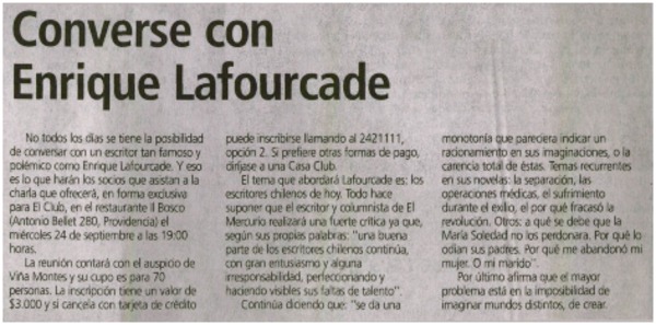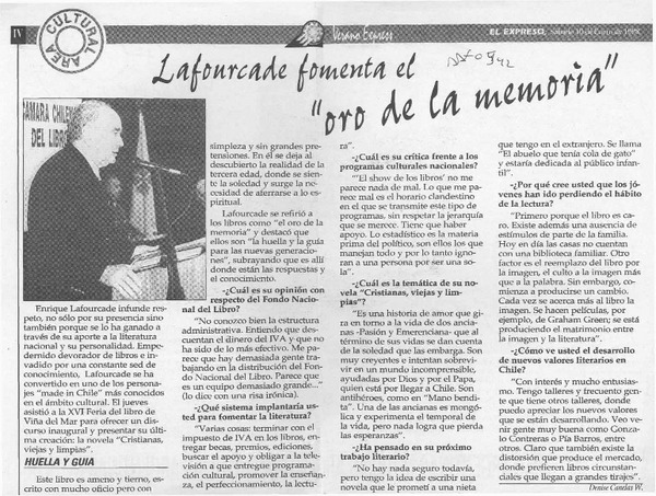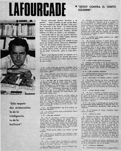 Autores chilenos - Lafourcade, Enrique - Entrevistas