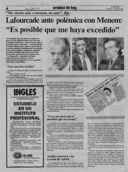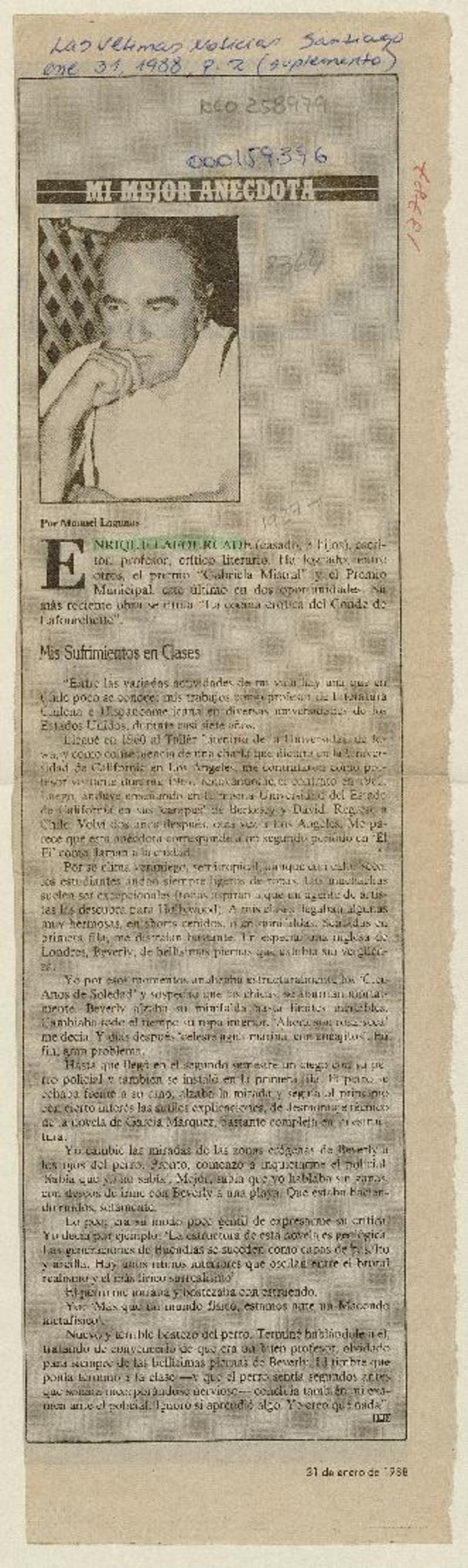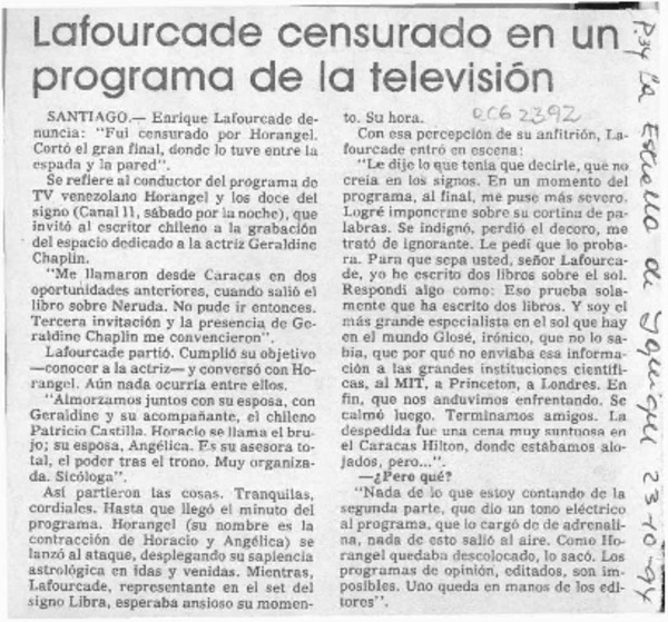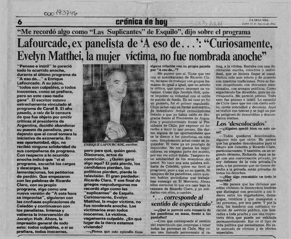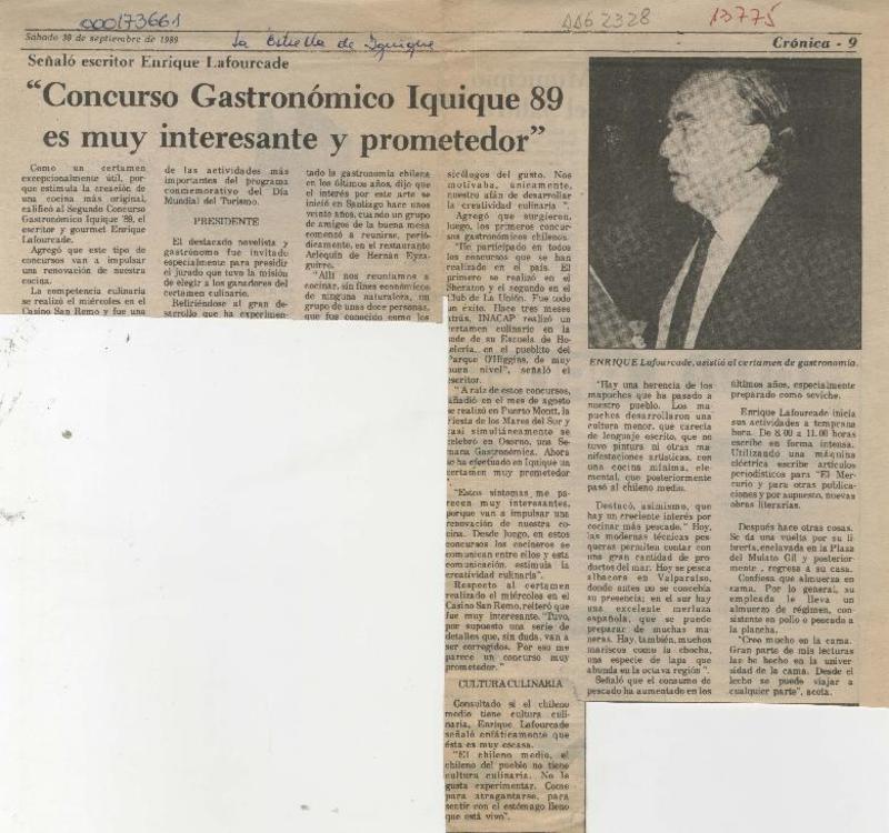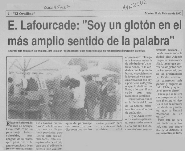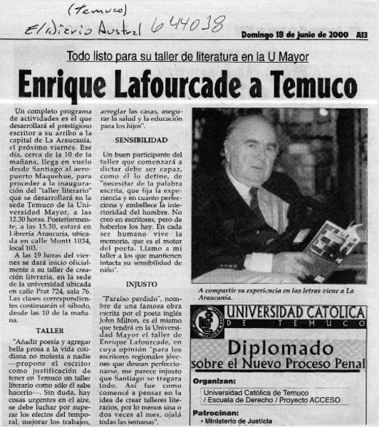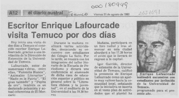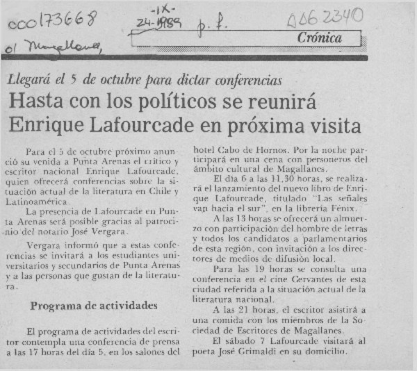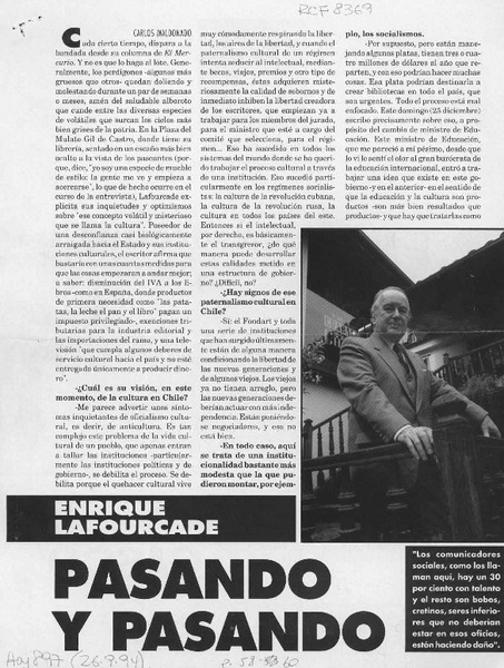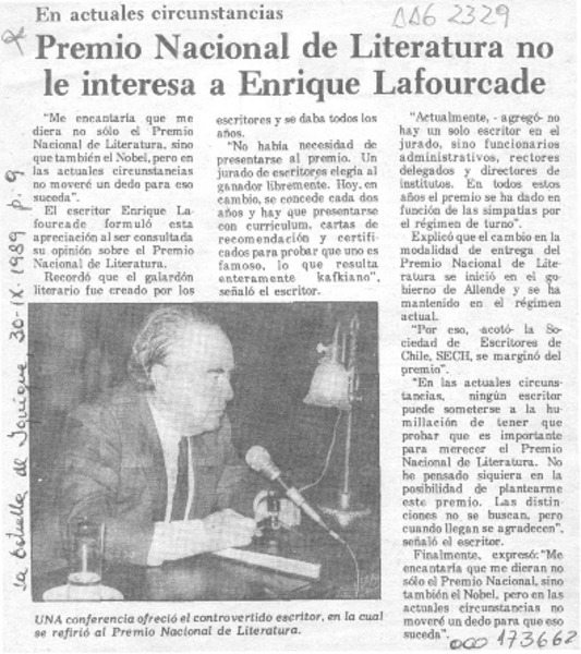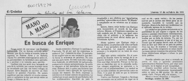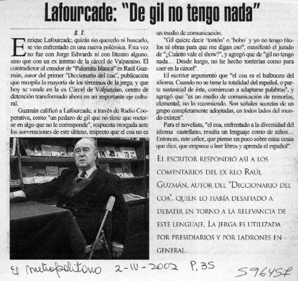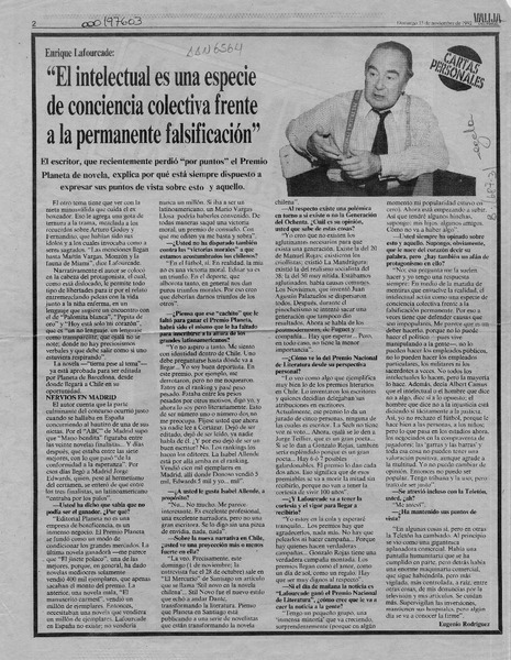 Autores chilenos - Lafourcade, Enrique - Entrevistas
