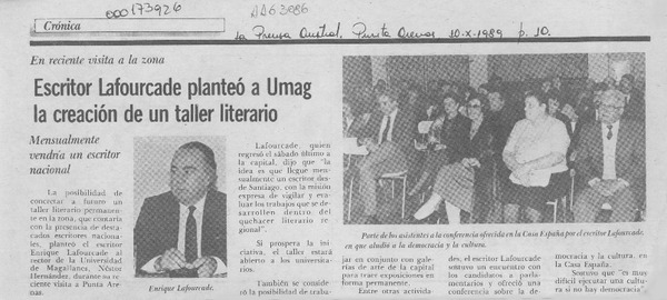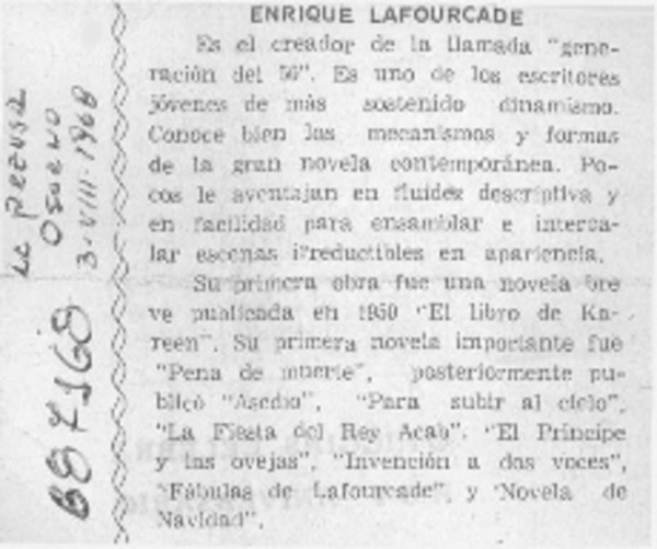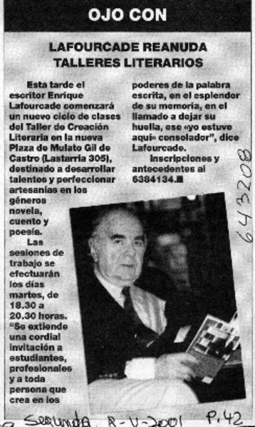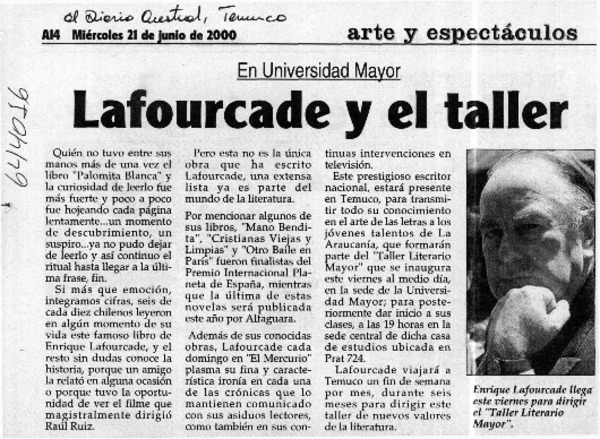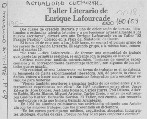 Taller literario de Enrique Lafourcade [artículo].
