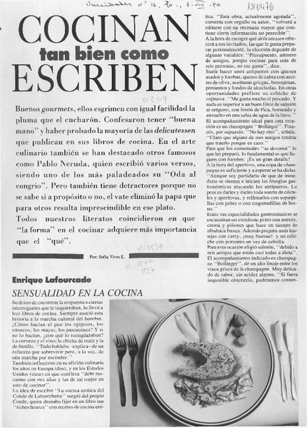 Cocinan tan bien como escriben [artículo] Sofía Vives E.