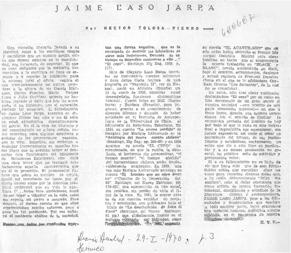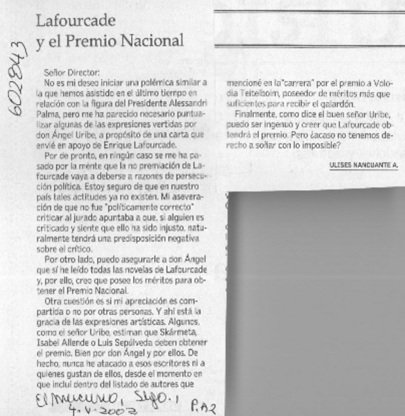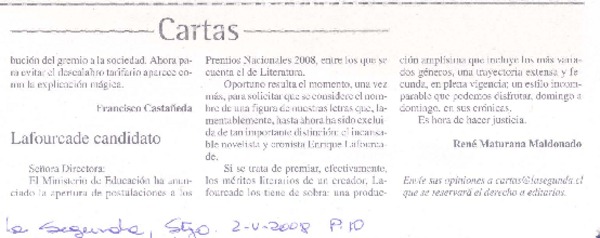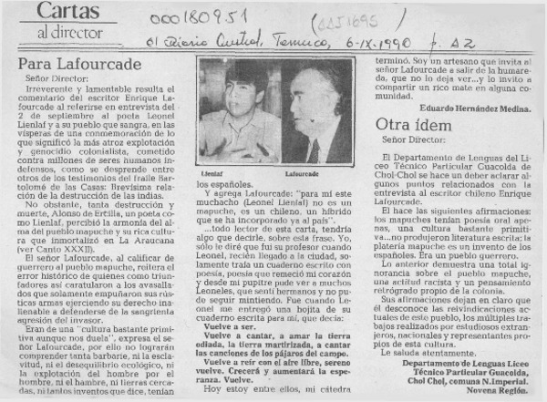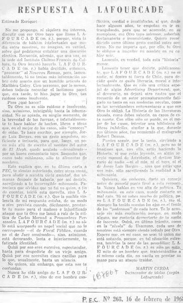 Carta a Lafourcade [artículo] Gonzalo Tapia Díaz.