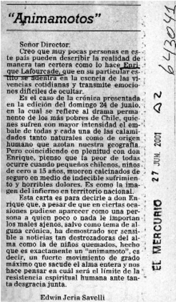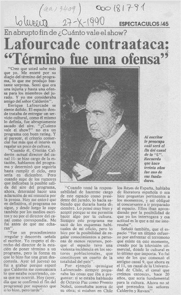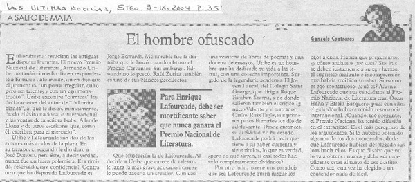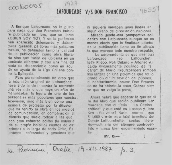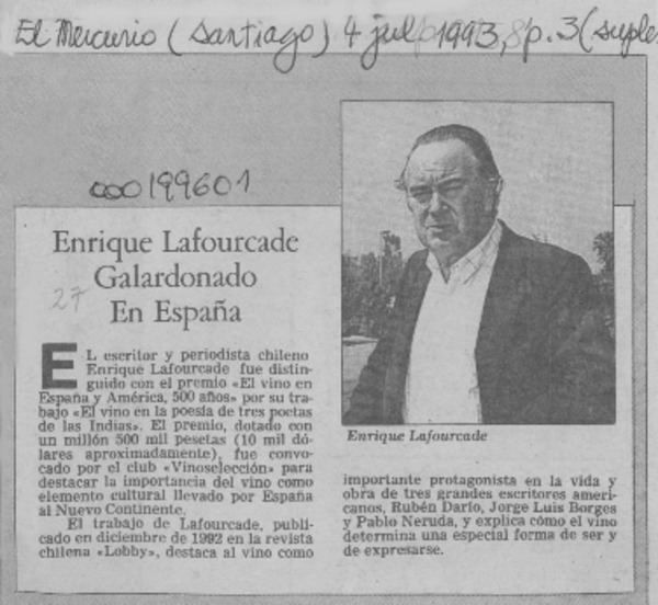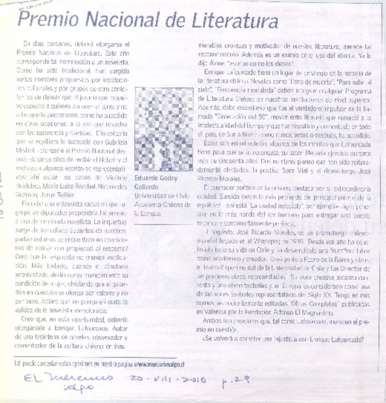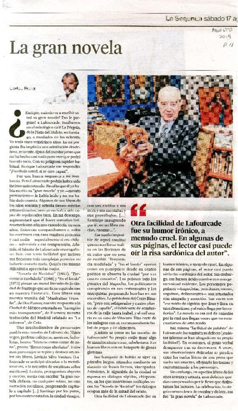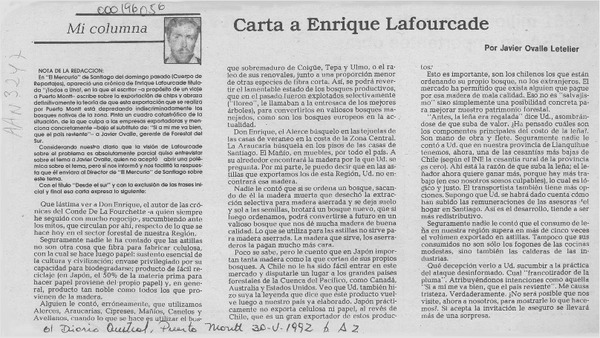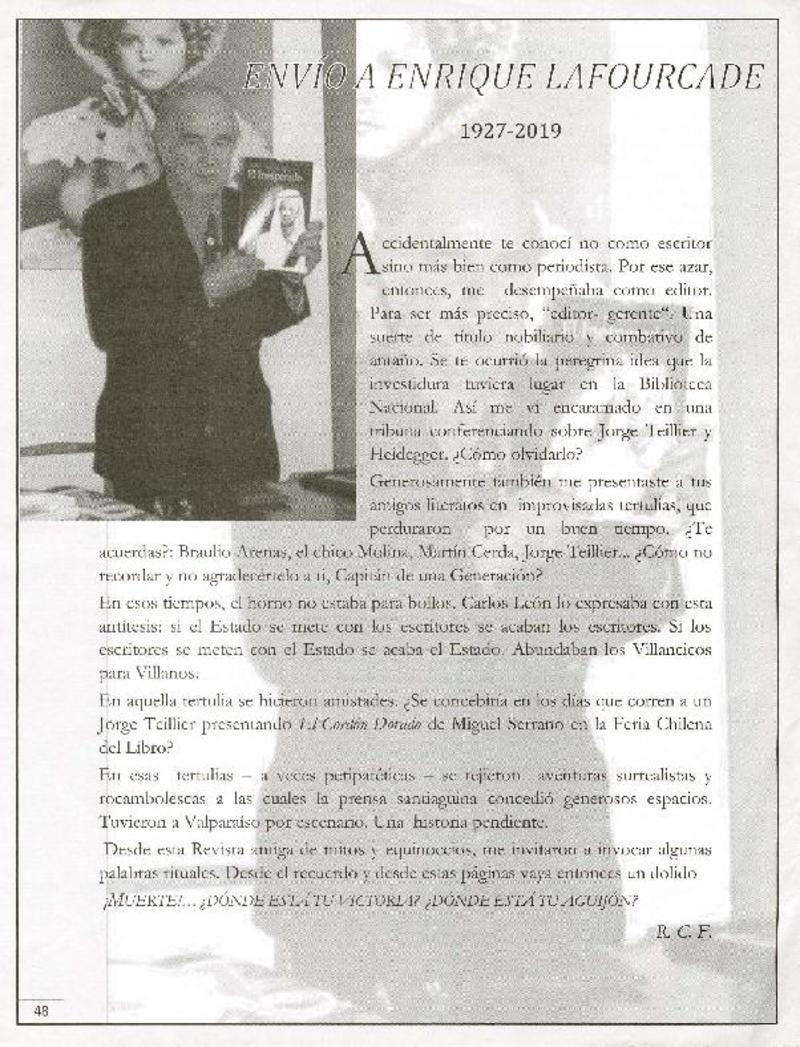 Carta a Enrique Lafourcade [artículo] Javier Ovalle Letelier.