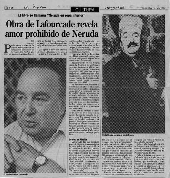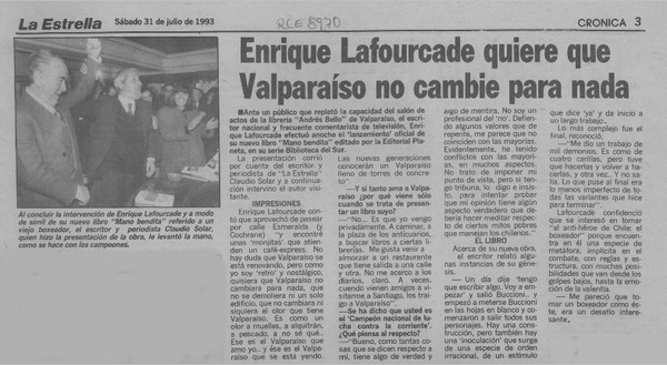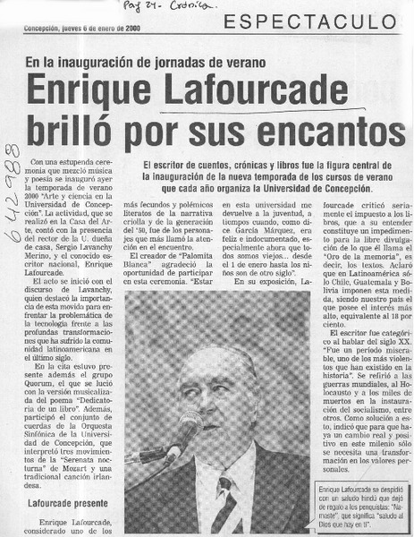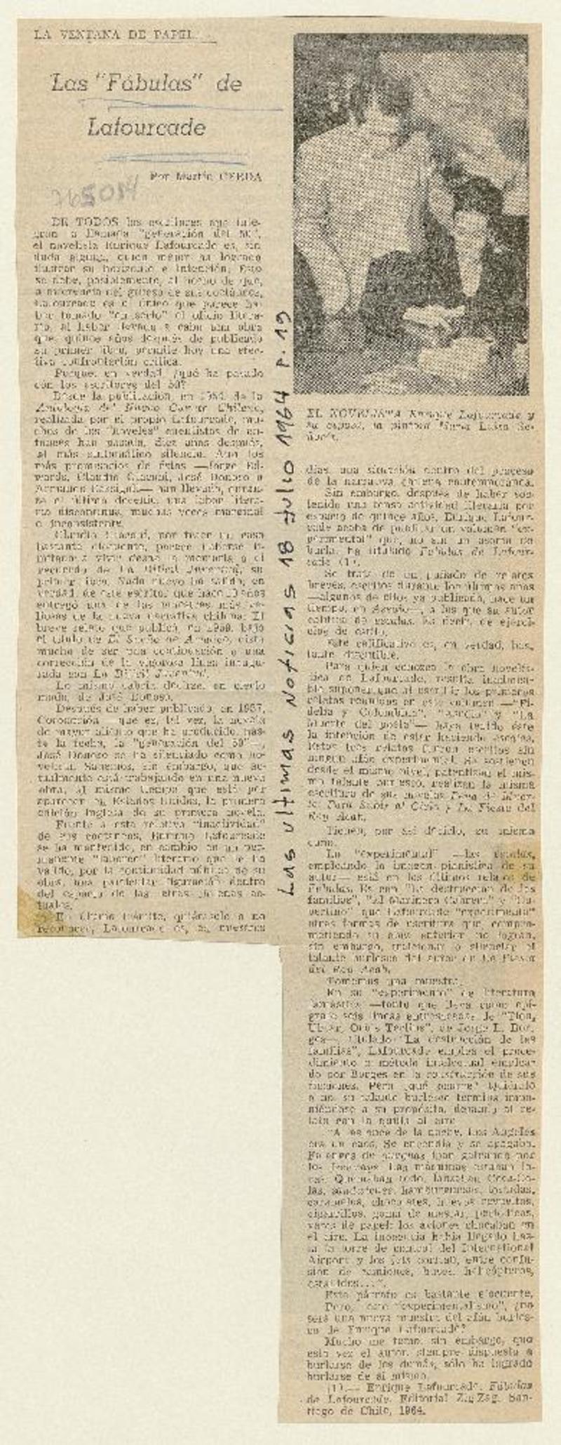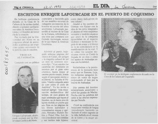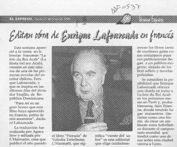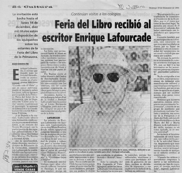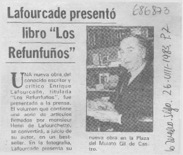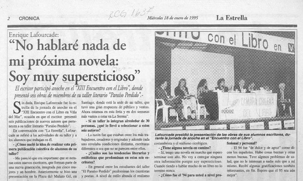 Una Novela "del paraíso" presentó ayer el escritor Enrique Lafourcade [artículo].