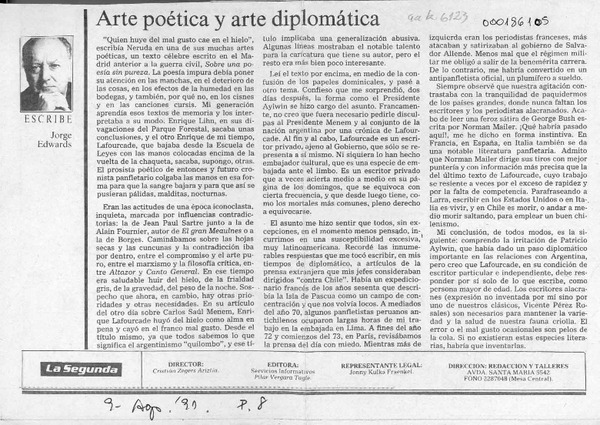 Arte poética y arte diplomática [artículo] Jorge Edwards.